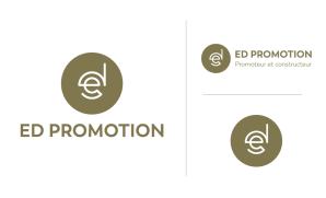 Le logo souhaité initialement par ED promotion est un monogramme dessiné suivant la perspective d’un bâtiment. Anguleuse et déjà vue, nous faisons évoluer cette proposition vers une nouvelle identité, plus élégante, en lien avec le positionnement haut de gamme attendu. Le dessin des initiales relie les lettres d et e en un seul tracé. On y sent à la fois protection et ouverture. Une pastille ronde porte le monogramme dans des couleurs sobres et élégantes. L’identité est contemporaine, sobre et élégante, à l’image de ED Promotion qui travaille avec soin les détails architecturaux de ses projets.