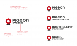 La cocarde, présente dans le logo historique, est revisitée. Elle raconte l’histoire du Groupe : celle des carrières et des chevaux, qui, à l’époque, tractaient les roches le long du chemin de halage. Le nom est placé à l’extérieur de la cocarde pour lui assurer impact et lisibilité. Le logo se décline sur l’ensemble des filiales du groupe, dans le but de créer une cohérence globale.