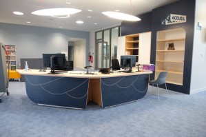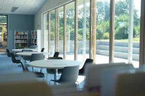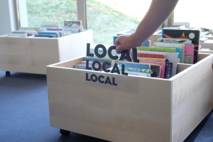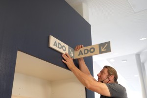 L’identité graphique se décline sur la signalétique de la médiathèque.