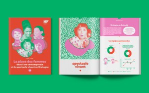 Depuis 2019, Pollen accompagne HF+ Bretagne dans la réalisation du diagnostic faisant état des inégalités de genre dans les arts et la culture en Bretagne. L’identité graphique de la plaquette repose en grande partie sur la mise en valeur de femmes iconiques, pionnières de leurs disciplines ou de leurs courants. Le traitement graphique (bichromie, retouche photo) ajoute du peps et du rythme à la mise en page des données.