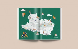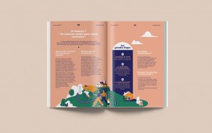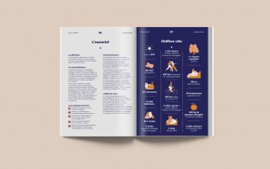 Pollen Studio créé sur mesure un style illustratif et une gamme de couleurs qui sont déclinés dans tout le document. Le trait de l’illustration est légèrement naïf, doux, tout en courbes. Original et accessible, il créé de la proximité avec le lecteur. La mise en page structure la lecture en mettant en valeur les éléments saillants.