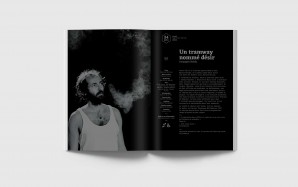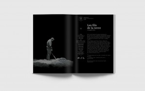 Le visuel photographique questionne le spectateur : est-ce une photo ou un dessin ? L’évocation de plumes d’oiseau, un costume de scène ou des herbes couchées par le vent ? La sensation de mystère est soutenue par l’utilisation du noir et argenté.