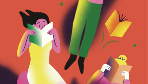 L’illustration est évocatrice de légèreté et d’envol. Celui que la lecture nous procure dès lors que l’on se plonge dans un nouveau livre. Les personnages sont diversifiés et permettent de toucher une cible large.