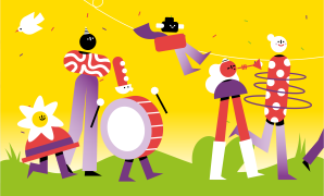 Pour exprimer la fête et la diversité, Pollen Studio propose un défilé de personnages qui traversent le cadre de l’affiche. Petits, grands, ronds, plats, de toutes les couleurs, un personnage évoque un chapeau, un autre, un tambour… les personnages sont fondus avec les instruments dans une farandole ludique et festive sur fond de jardin estival. L’affiche s’adresse à tous les publics, et se remarque de loin avec ses couleurs lumineuses.