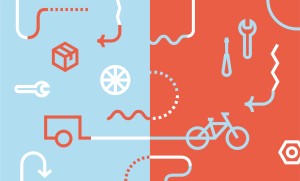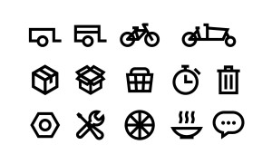 Pictogrammes et tracés s’assemblent en un réseau graphique et mouvant, à l’image d’un trajet à vélo